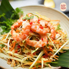 Gỏi tôm nõn xoài xanh: Vị chua của xoài kết hợp hoàn hảo với vị ngọt của tôm, tạo nên một món ăn cực kỳ "bắt" miệng.
