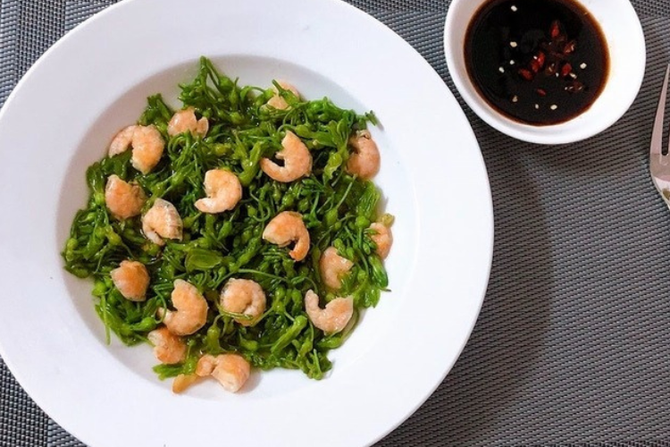 Nguyên liệu: Nõn tôm, bông thiên lý, tỏi, gia vị.